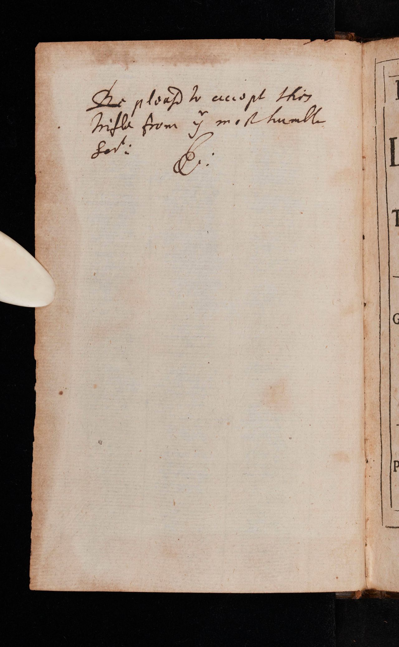 Annotation in the hand of John Evelyn 'be pleased to accept this trifle from your most humble servant J.E'