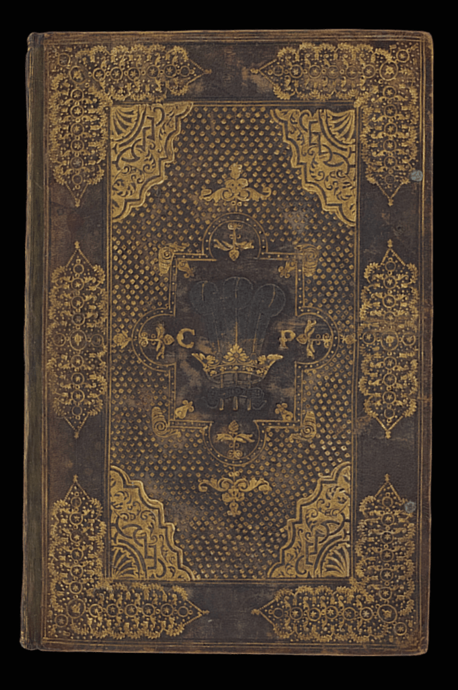 Gold tooled initials 'CP'>
