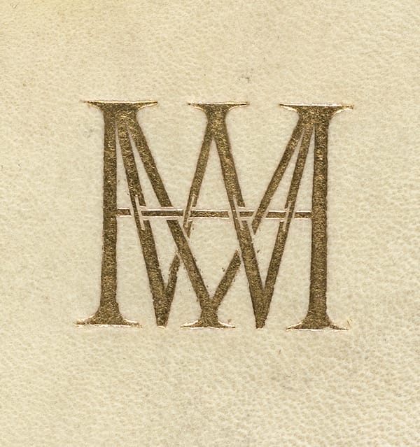 William Henry Miller monogram from 'The Parliament of ladies. Or Divers remarkable passages of ladies in Spring-Garden; in Parliament assembled. : Together with certaine votes of the unlawfull assembly at Kates in Coven Garden. Vespre Veneris Martis: 26. 1647. Ordered by the ladies in Parliament assembled, that their orders and votes be forthwith printed and published, to prevent such misreports and scandals, which either malice, or want of wit, hightned with snoffes of ale or stayned claret may cause, in the dishonour of the said votes and proceedings in Parliament. Ja: Kingsmill Clar. Parliamen.' 1647, by Henry Neville, Lodon, State Library Victoria, Melbourne (RAREEMM 134/2)