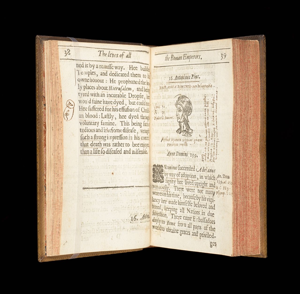 pp.38–9 from 'The lives of all the Roman emperors: being exactly collected from Iulius Caesar unto the now reigning Ferdinand the Second...', London, printed by N. and I. Okes, and are to be sold by George Hutton at the Signe of the Sun within Turning-Stile in Holborne, 1636, State Library Victoria, Melbourne (RAREEMM 114/4)