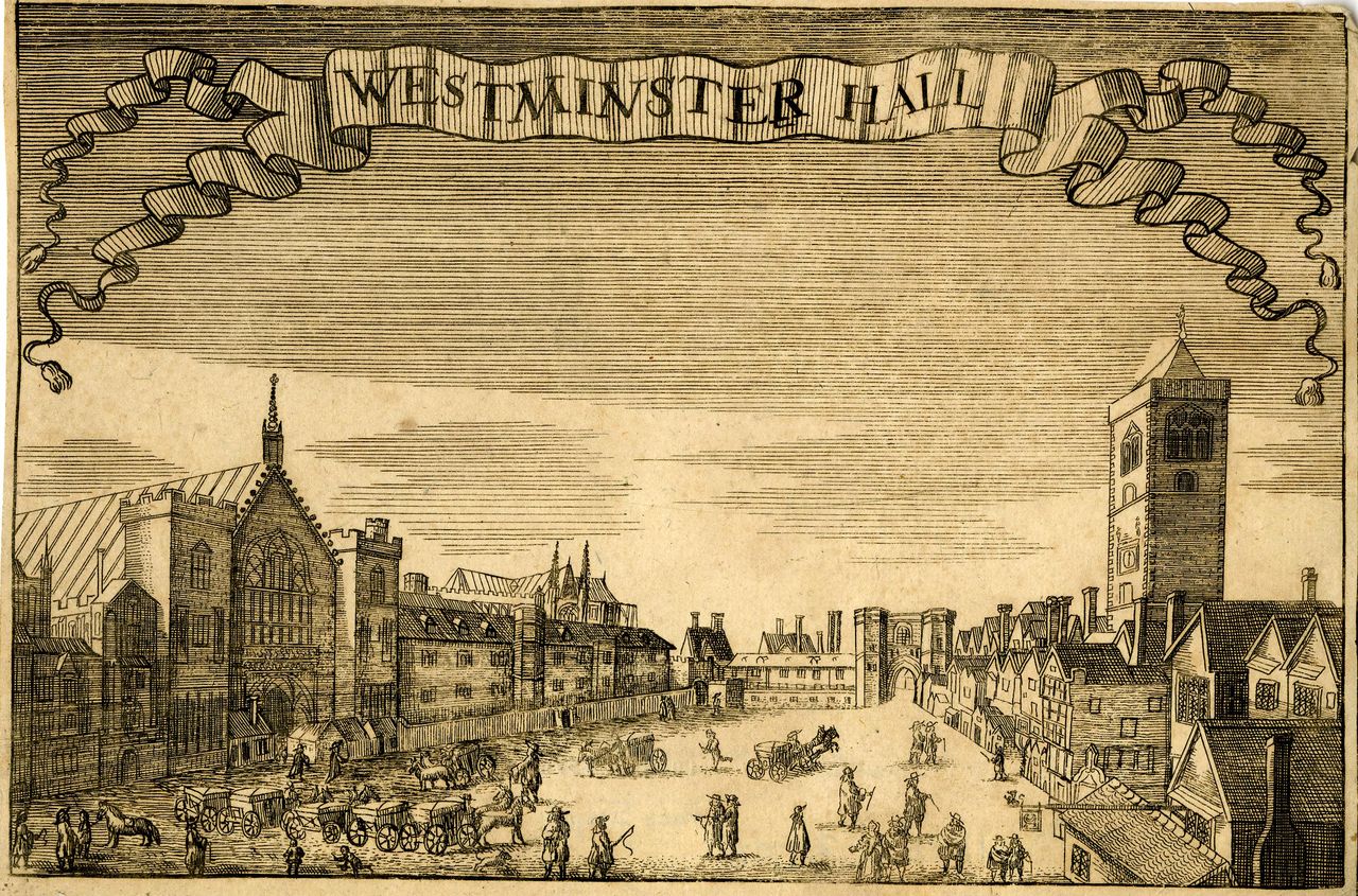 'View in New Palace Yard, Westminster, with Westminster Hall on the left' 1648, by unknown artist (after Wenceslaus Hollar), British Museum, London (Gg,4V.35)
