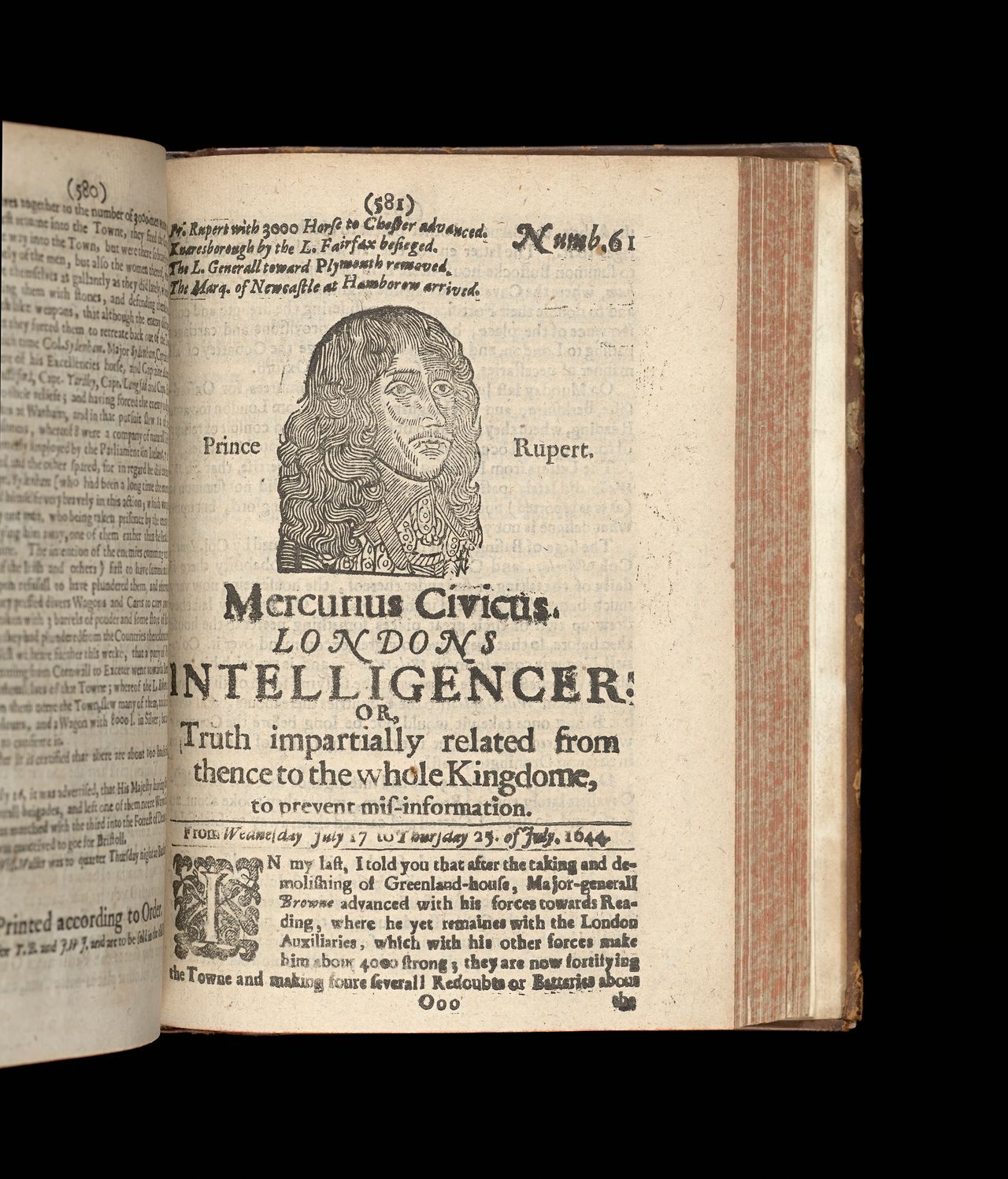 'Mercurius civicus, Londons intelligencer...', London, printed, and are to be sold in th[a]t Old Bayly, 17–25 July 1644, no. 61, State Library Victoria, Melbourne (RAREEMM 125/1)